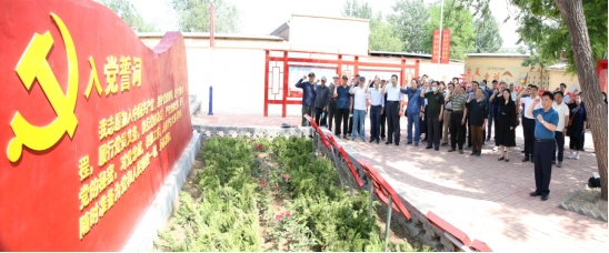 在夏津县郑保屯镇柳元庄村刘华清将军战时旧居,全体党员了解该村丰富的红色文化底蕴,聆听这片热土在抗日战争、解放战争、抗美援朝战争等革命战争中涌现出的英烈事迹,深切缅怀他们的丰功伟绩和不朽精神,接受了一次深刻的革命传统教育和爱国主义教育,全体党员面对庄严神圣的党旗重温入党誓词。
