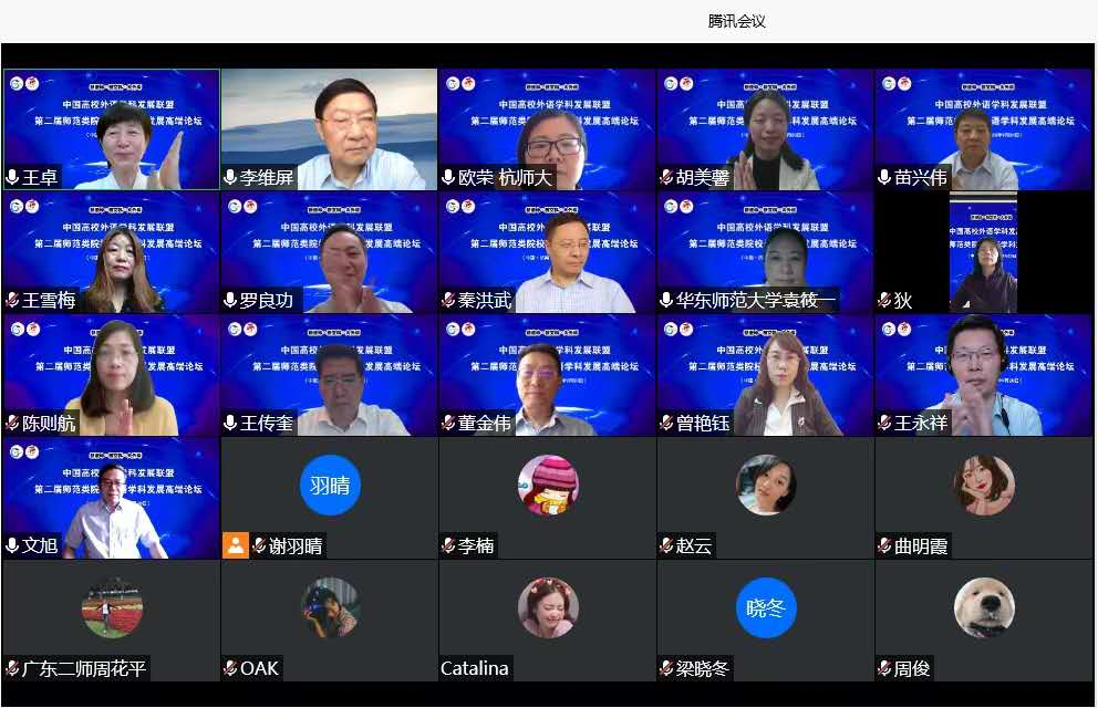 主旨发言环节,北京师范大学苗兴伟教授、西南大学文旭教授、华东师范大学袁筱一教授、湖南师范大学曾艳钰教授、上海外国语大学王雪梅教授、华中师范大学罗良功教授、南京师范大学王永祥教授、西北师范大学曹进教授、华南师范大学谷红丽教授、浙江师范大学胡美馨教授及我校王卓教授等11位专家围绕“新使命·新文科·大外语背景下师范类院校外语学科新发展”的主题,探讨了师范类院校外语学科的跨学科发展、师范类院校外语学科与外语专业一体化发展路径、师范类院校一流外语专业建设、师范类院校外国文学教育与课程改革、师范类院校外语“课程思政”建设、外语教师专业发展、师范类专业认证、人才培养等重要议题,就“十四五”时期我国师范类院校外语学科发展战略进行了深入研讨。
