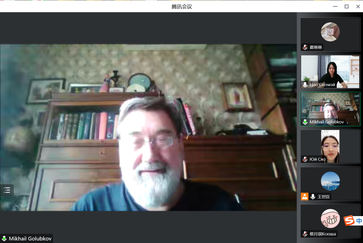 2023年4月17日晚,受外国语学院邀请,俄罗斯知名文学家,莫斯科国立大学语文系教授、博士生导师,莫斯科国立大学俄罗斯当代文学史与当代文学进程教研室主任米哈伊尔·米哈伊洛维奇·戈鲁布科夫受邀做学术讲座。本次讲座由山东师范大学外国语学院俄语系教师曹雪梅主持,俄语系主任孙嵩霞副教授、杨洁、王世臣、李丽平、尹禄、王丽娜等老师,俄语系本科生、研究生以及其他高校的学者和师生共同在线聆听了讲座。