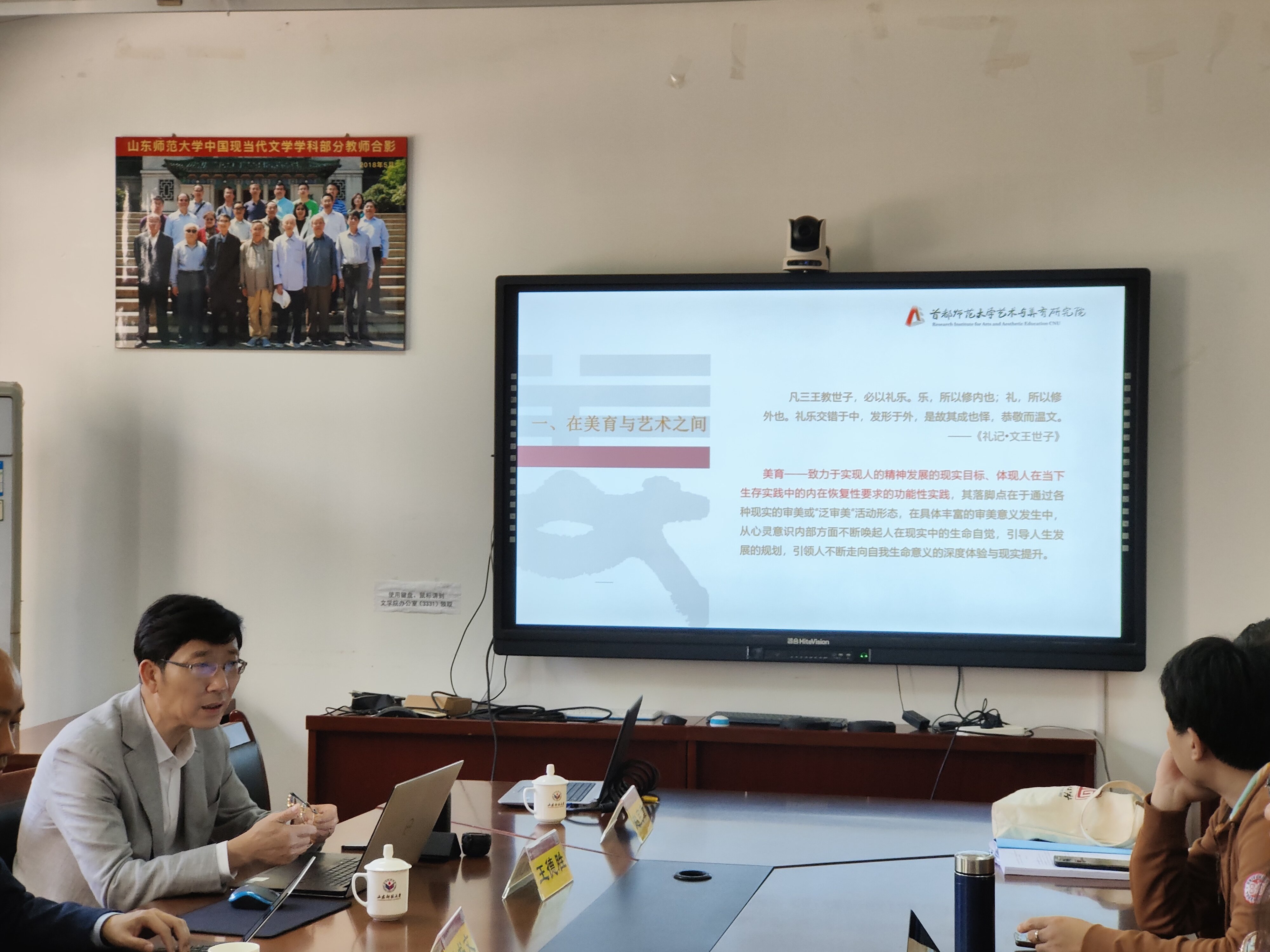 2023年5月8日上午,文学院邀请首都师范大学美育研究中心主任、博士生导师王德胜教授做“作为美育的艺术、艺术史如何可能”为题的讲座,讲座由孙书文院长主持。本次讲座有来自文艺学教研室、古代文学教研室、文献学教研室的多位老师以及在校文艺学、美学、比较文学等多个专业研究生和艺术学院旁听研究生共同参与。