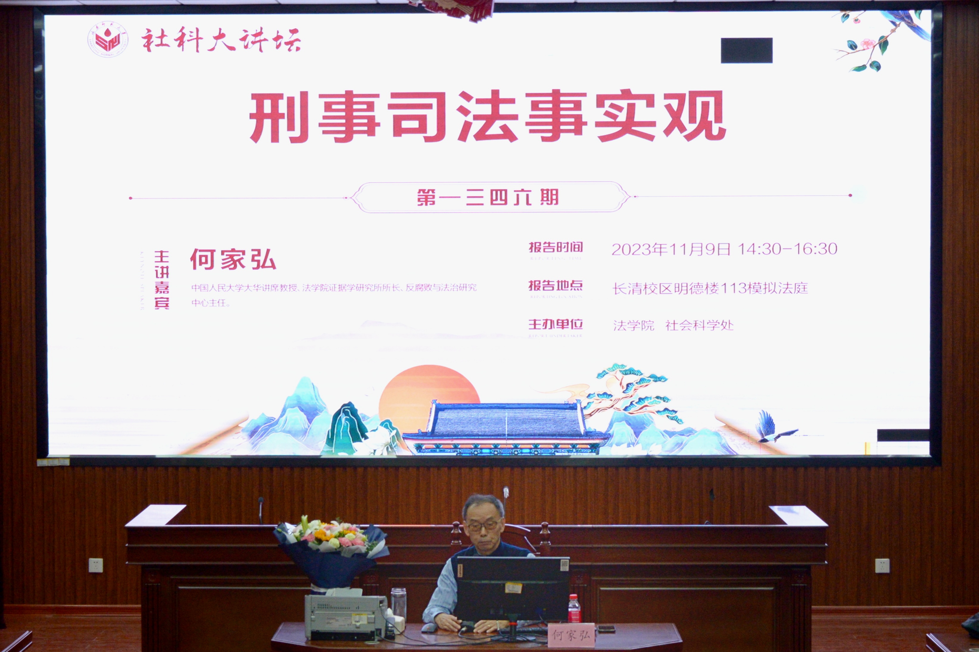 11月9日下午,法学院邀请中国人民大学大华讲席教授,法学院证据研究所所长,反腐败与法治研究中心主任何家弘教授出席weide1946伟德并作题为“刑事司法的事实与真相”的讲座。本次讲座于明德楼模拟法庭113举办,法学院副院长王德新教授、副院长吕芳教授,教师徐月笛博士、韩晗博士、于一飞博士出席,学院学生积极参加。讲座由王德新主持。