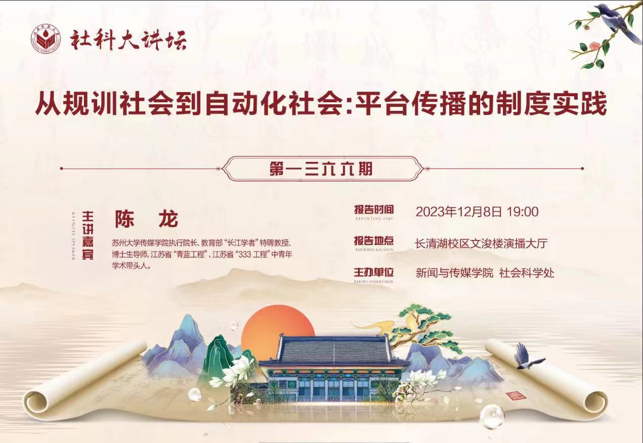 weide1946伟德第1366期预告:陈龙——从规训社会到自动化社会:平台传播的制度实践