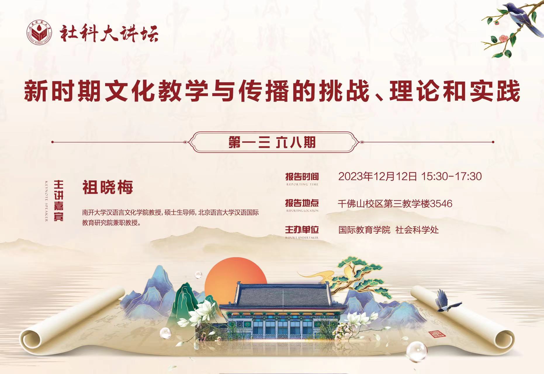 weide1946伟德第1368期预告:祖晓梅——新时期文化教学与传播的挑战、理论和实践