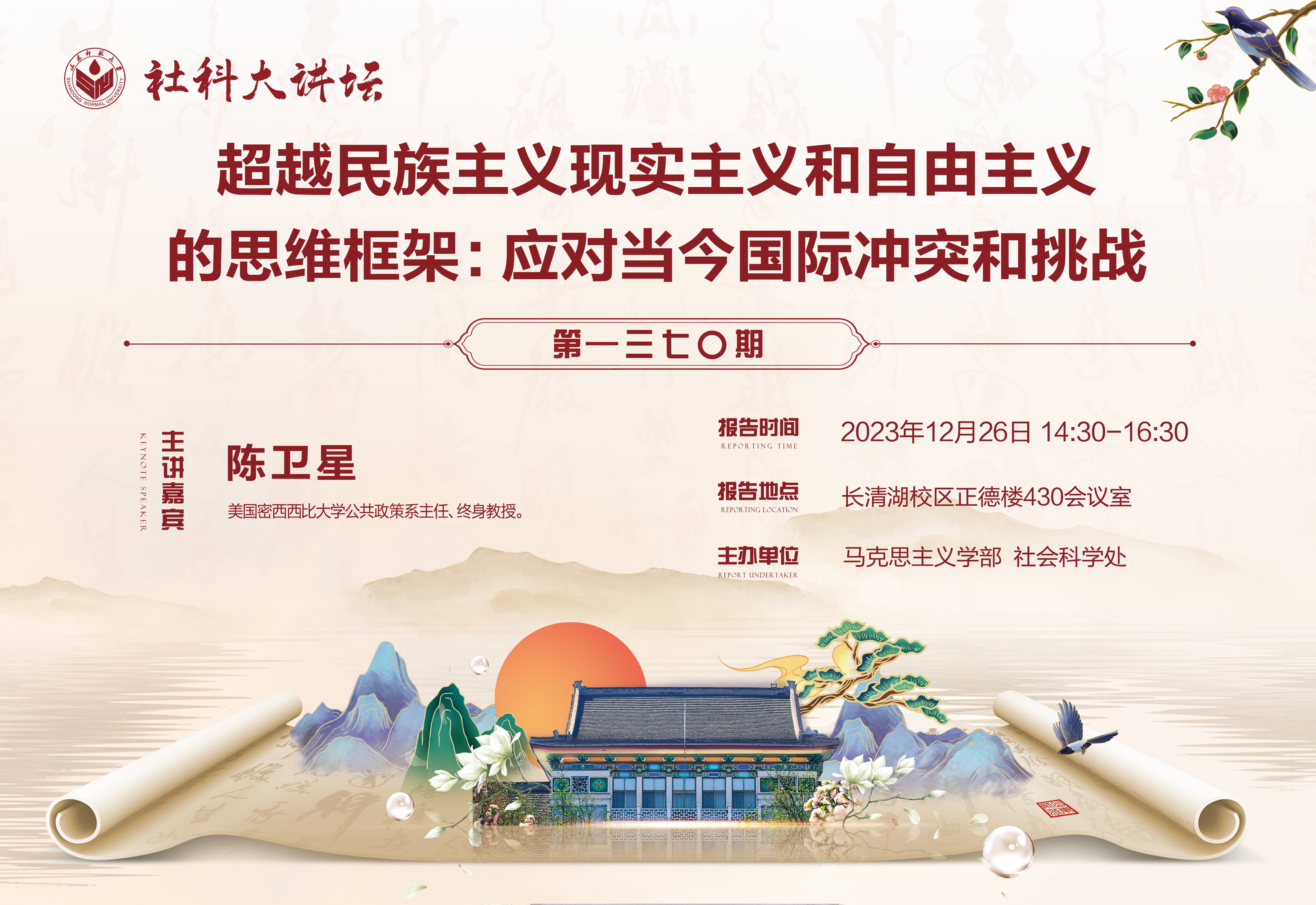 weide1946伟德第1370期预告:陈卫星——超越民族主义现实主义和自由主义的思维框架:应对当今国际冲突和挑战