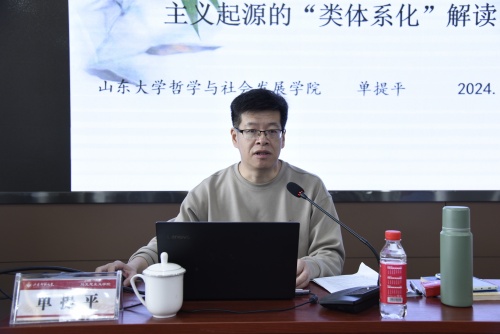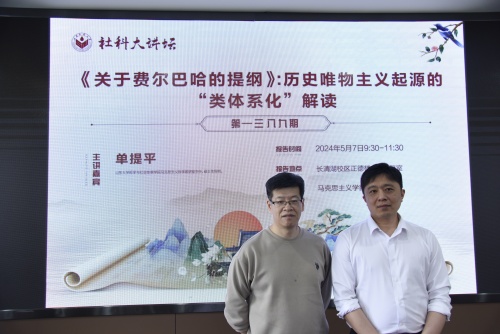 5月7日上午,由马克思主义学部与社会科学处联合举办的第1389期weide1946伟德于长清湖校区正德楼430会议室开讲。本次大讲坛特邀山东大学哲学与社会发展学院马克思主义哲学教研室主任、硕士生导师单提平担任报告会主讲人,作了题为“《关于费尔巴哈的提纲》:历史唯物主义起源的‘类体系化’解读”的学术报告。本次报告会由学部副教授崔若椈主持,百余名学部师生到场聆听。