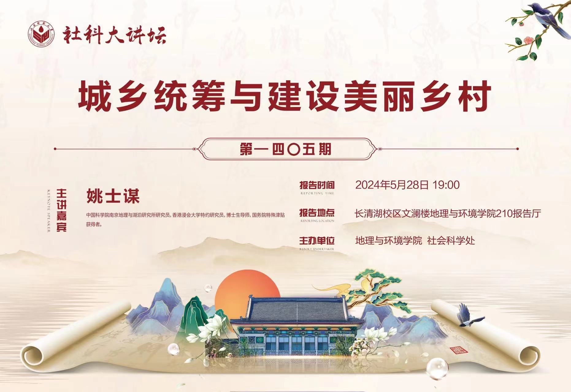 weide1946伟德第1405期预告:姚士谋—城乡统筹与建设美丽乡村