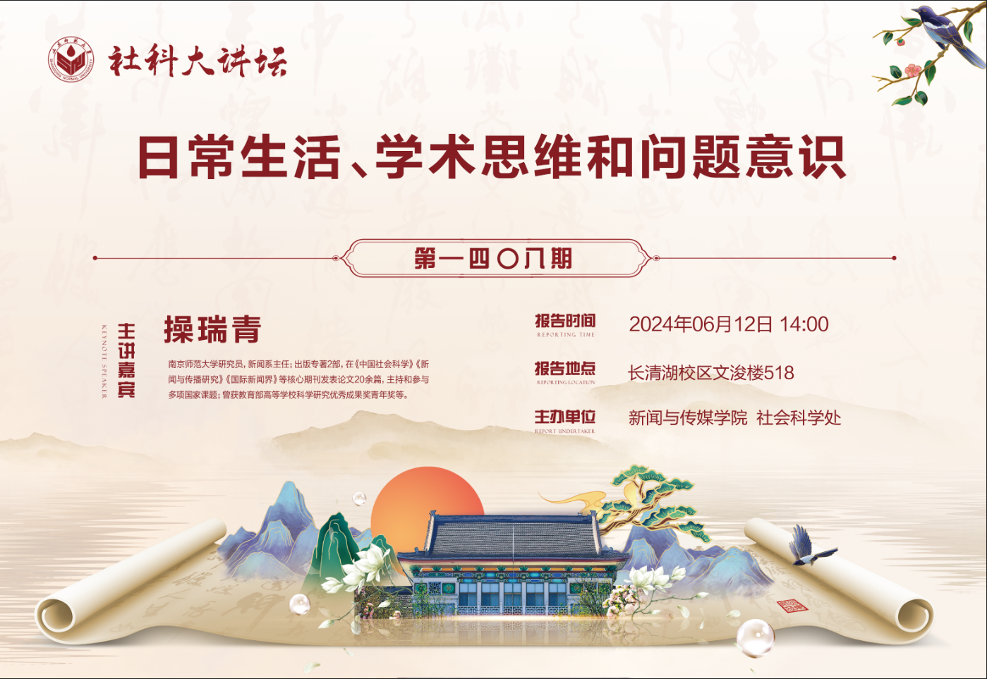 weide1946伟德第1408期预告:操瑞青——日常生活、学术思维和问题意识