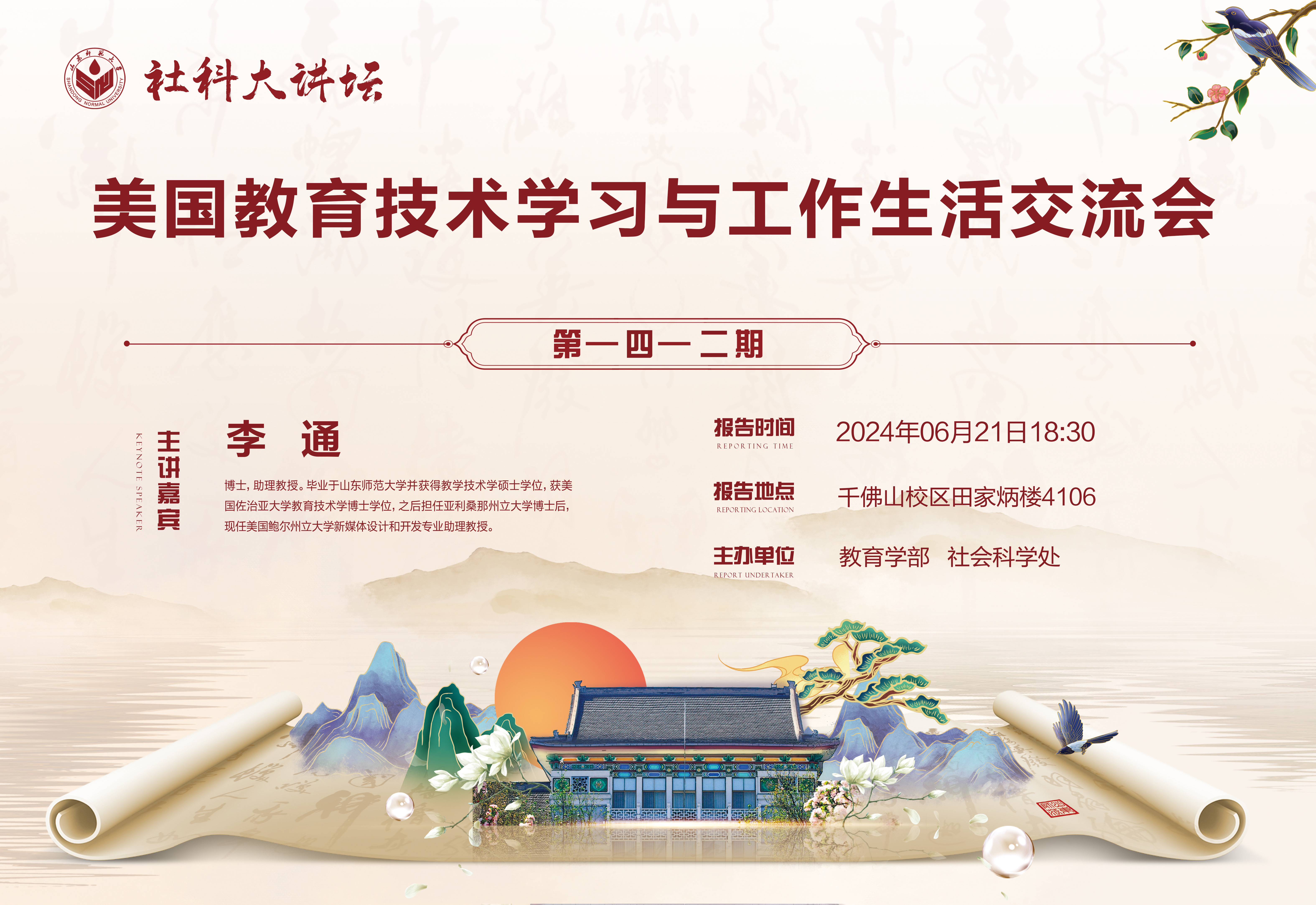 weide1946伟德第1412期预告:李通—美国教育技术学习与工作生活交流会