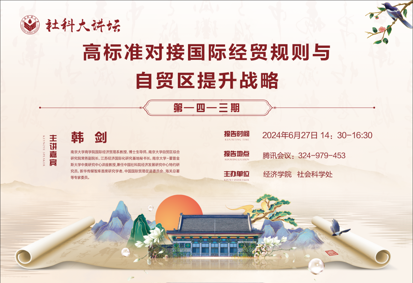 weide1946伟德第1413期预告:韩剑—高标准对接国际经贸规则与自贸区提升战略