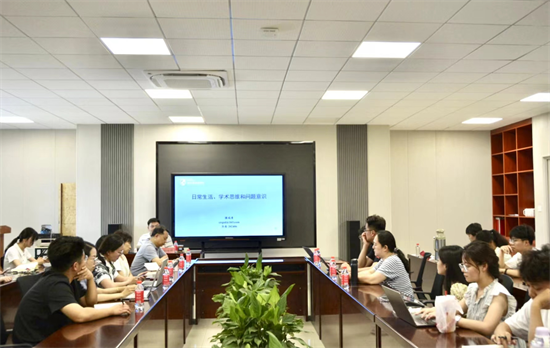 操瑞青从日常生活、学术思维和问题意识三方面展开分享。他总结了研究生选题的常见问题,指出大多数同学在研究过程中缺少将日常生活中的选题对象转化为一个学术问题的好办法,也就是没有问题意识,所谓问题意识,就是接近于在处理研究对象的时候,能够提出一个把对象从“描述”中解救出来并对其予以“解释”的问题。