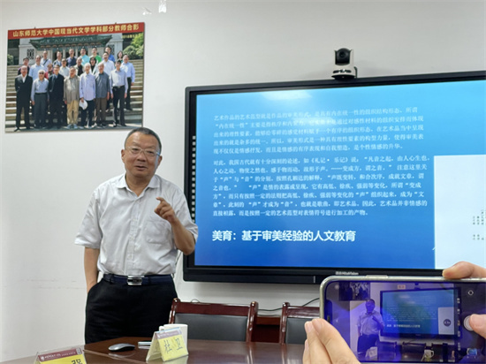 2024年6月25日,杭州师范大学教授、教育部高校美育教指委副主任委员、中华美学学会副会长杜卫做客山东师范大学文学院“崇文大讲堂”,为文学院师生做了题为“美育是基于审美经验的人文教育”的讲座。本次讲座由山东师范大学文学院教授周均平主持,文学院院长孙书文、副院长邹强,以及文艺学教研室李红春、厉运伟、李慧、段超等师生共30余人参加了此次讲座。