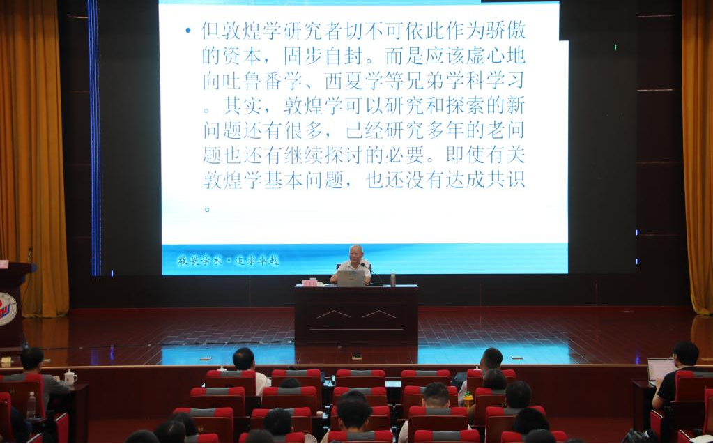 讲座伊始,郝春文先生开门见山地提出,虽然中国学者在对敦煌学的百余年研究历程中已经获得了世人瞩目的成就,但敦煌学者不可固步自封,还应不断探索、博学多鉴。紧接着,郝先生向大家介绍了学界不同学者对于“敦煌”二字由来的研究以及关于其含义的相关争论。对此,他经过全面分析后阐述了个人对此问题的进一步认识。然后,郝春文先生围绕“敦煌学是由谁首创”、敦煌学的内涵及其学科性质、敦煌文献的数量、敦煌藏经洞的封闭原因等有争议的问题,分别展开了深入系统的讨论。在对学界相关观点综合分析的基础上,郝先生分别提出了个人的有关认识,相关认识在很大程度上对“与敦煌有关的几个基本问题”给出了合理的解释,推动了敦煌学研究的新发展。