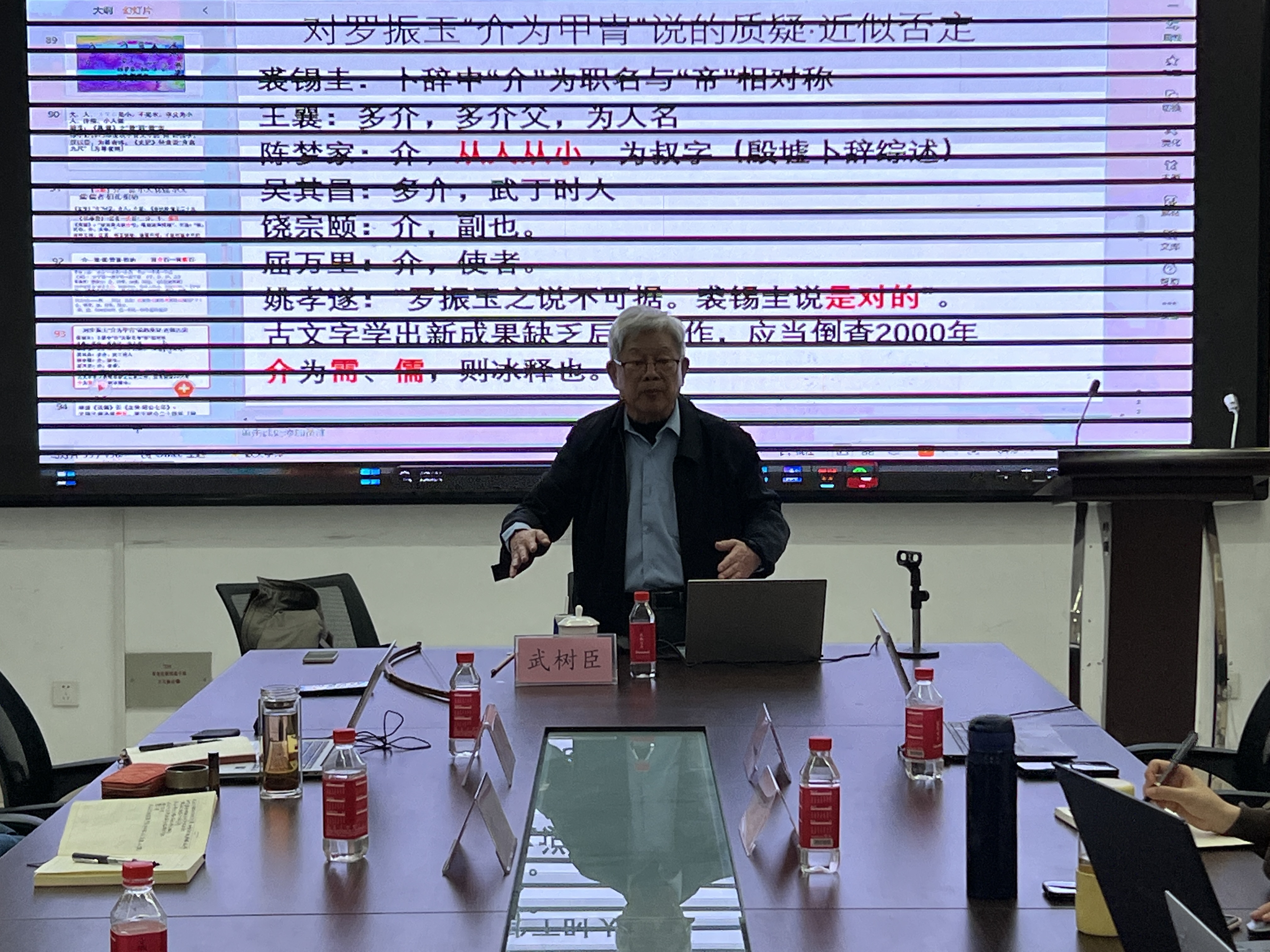 讲座伊始,荆月新对武树臣教授的到来致以诚挚的欢迎。武树臣首先详细介绍了“灋”字的字形演变及其内涵的发展过程,阐明古代的“灋”是一种诉讼现象,由法官根据双方提出的证据来审理案件,在解决争端的同时形成了具有指导意义的判例,这些判例进而成为规范人们行为举止的准则,所以“灋”字的本义是诉讼审判。紧接着他提出,古代的法家是“大法家”,包括诸子法家和职业法家,并分别解读了孔子与诸子法家和职业法家的关系,指出孔子在前半生中崇尚周礼,其法律思想与法家有着诸多共通之处。但是,这与孔子后来是儒家代表并不矛盾,其“仁”的理念更是可以视为个体自然人的圣经。