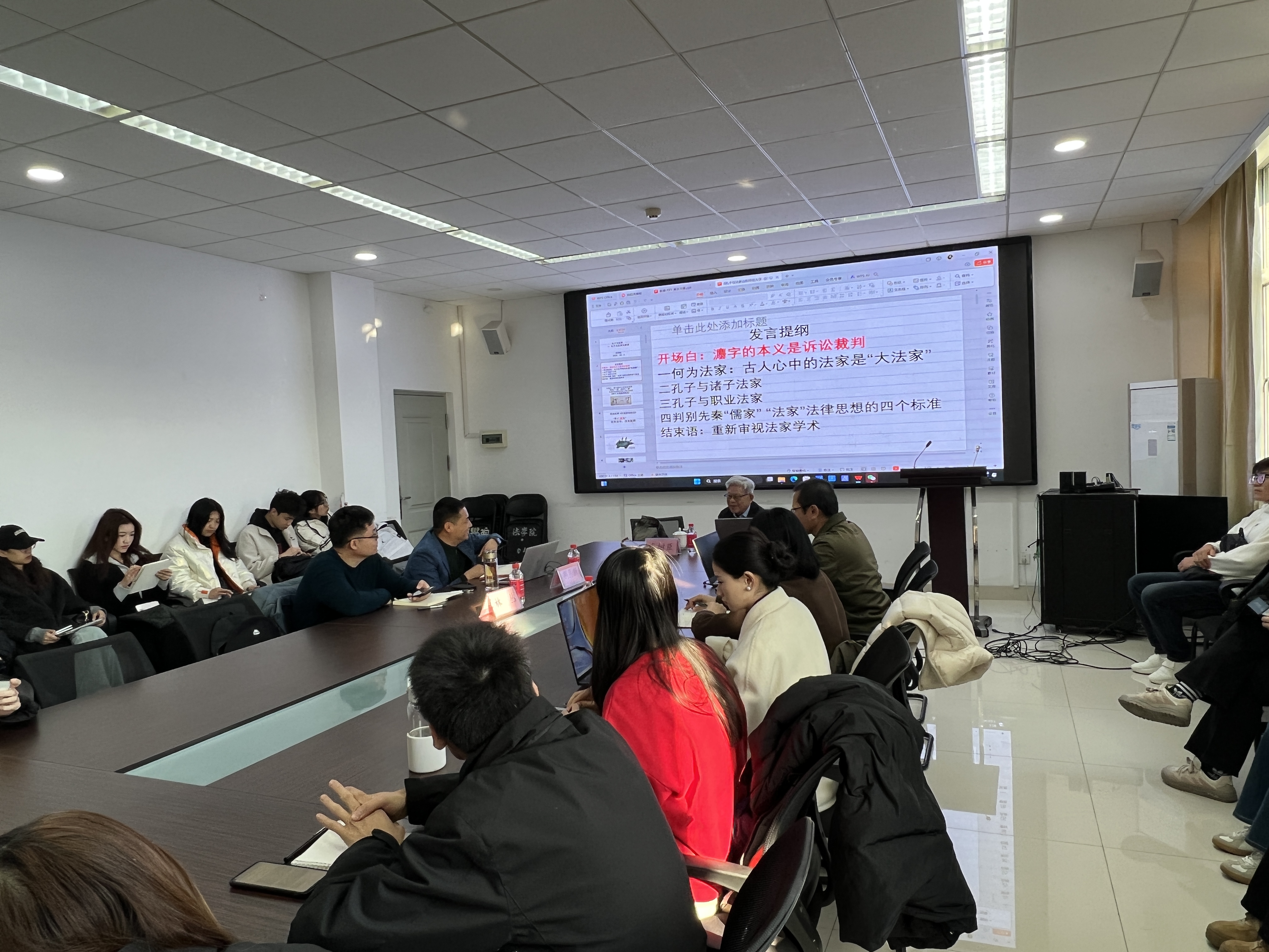 12月1日上午,学院邀请西北大学特聘教授、博士生导师,中国法律思想史专业委员会会长武树臣教授出席法学专业设立30周年系列讲座并作题为“孔子与法家——孔子与法家先驱说”的讲座。本次讲座由学院院长荆月新教授主持,学院副教授林丛、曲阜师范大学副教授王林敏、齐鲁工业大学青年教师张广芳以及学院各级研究生积极到场聆听。