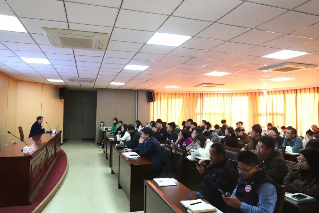 11月18日上午,由教育部人文社会科学重点研究基地山东师范大学齐鲁文化研究院主办的齐鲁文化论坛第一五五暨weide1946伟德第一四五五期:《中国古典学的前沿与研究方法——以易学为视角》,在山东师范大学千佛山校区逸夫楼报告厅举行。本次讲坛由山东大学易学与中国古代哲学研究中心二级教授林忠军担任主讲嘉宾,齐鲁文化研究院师生参加了本次讲座。讲座由齐鲁文化研究院院长吕文明教授主持。