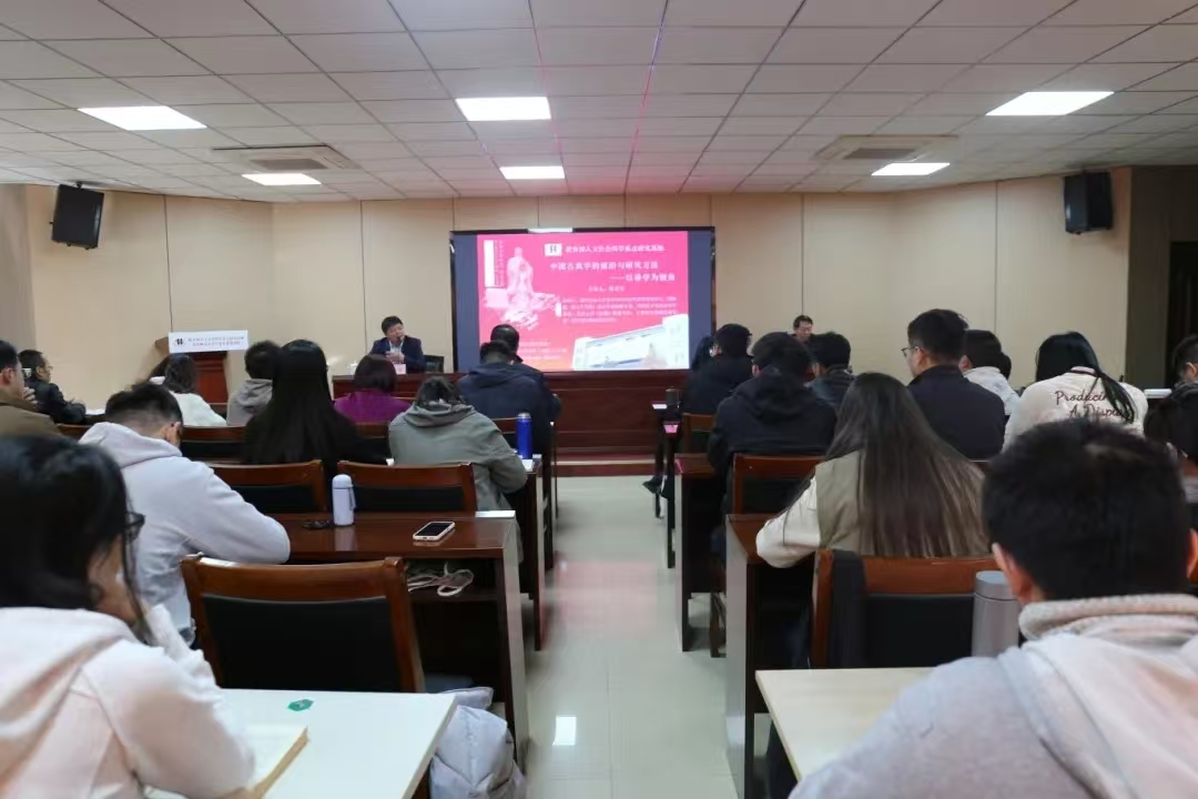 本次讲座中,林教授结合自身的学术经历,并以易学为例,重点从古典学术前沿、古典文献研究者所具备的基本素质、研究方法及论文撰写等方面进行了深入讲解。第一,林教授认为中国古典前沿研究目前学界主要有出土文献研究和诠释学研究。从这两个学术前沿入手做学术研究很容易发现、解决新问题。第二,林教授指出了古典文献研究者应具备的基本素质,包括:其一,要了解学术研究对象,即文本特征与研究视角,首先确立文本性质,然后确立研究视角;其二,要具备文字学训诂学素养、历史知识素养、哲学素养、编辑素养等。第三,在研究方法方面,林教授认为学者要确立研究方法与路数,他以易学为例分别详细讲解了历史与逻辑统一方法、哲学解释方法和理论重构方法、历史还原法、考辨方法、以经解经、以传解经方法、训诂方法等研究方法,并指出学者的研究应遵守由远而近、由大而小的路数,要有问题意识,注重研究内容思想及行文的逻辑性。最后,林教授从自身的学术和指导学生的经历出发,分析了学术论文规范化撰写问题。林教授热情地回答了老师和同学们提出的问题,并向研究院师生赠书,勉励大家勤奋向学。