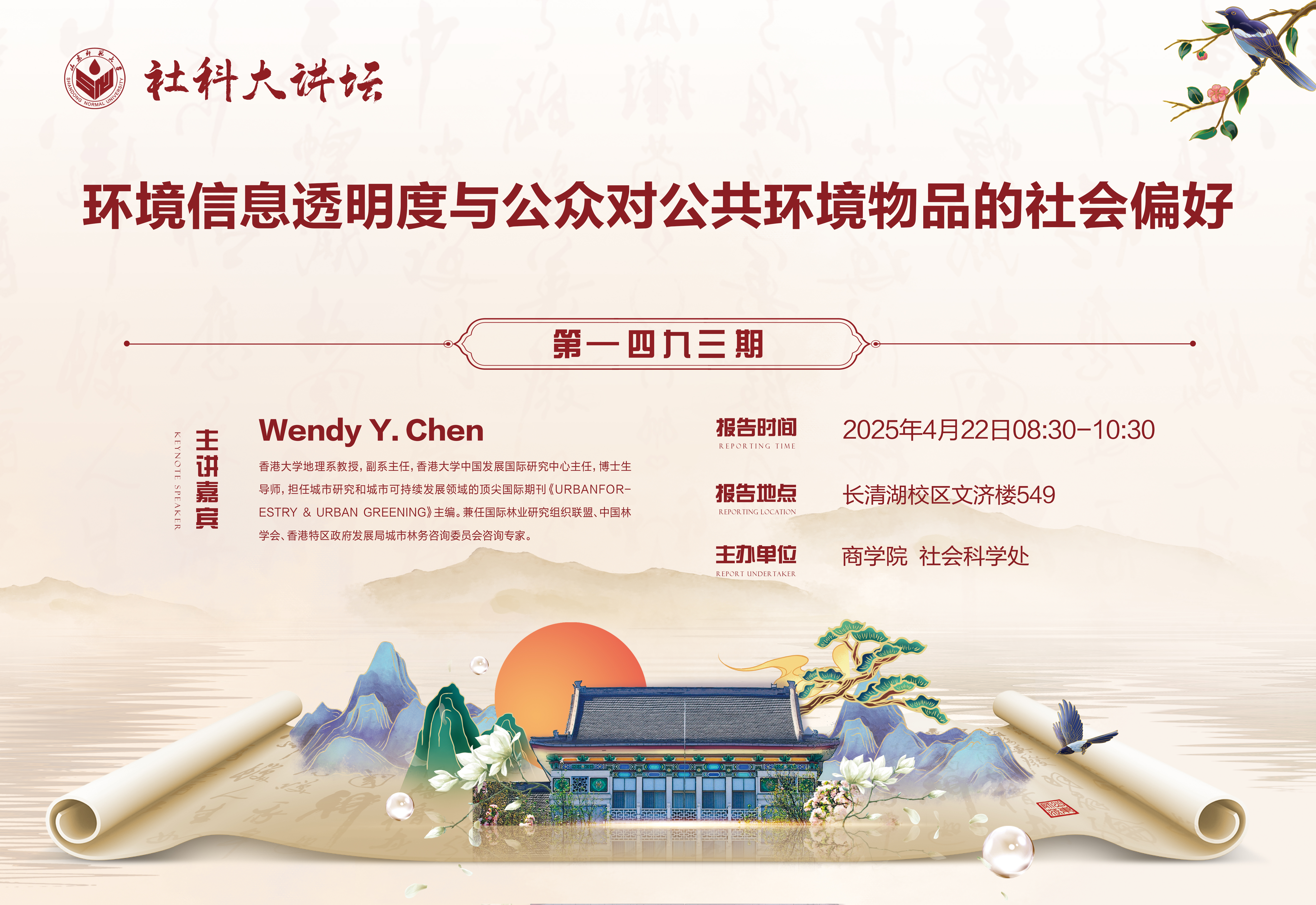 weide1946伟德第1493期预告:Wendy Y.Chen——环境信息透明度与公众对公共环境物品的社会偏好
