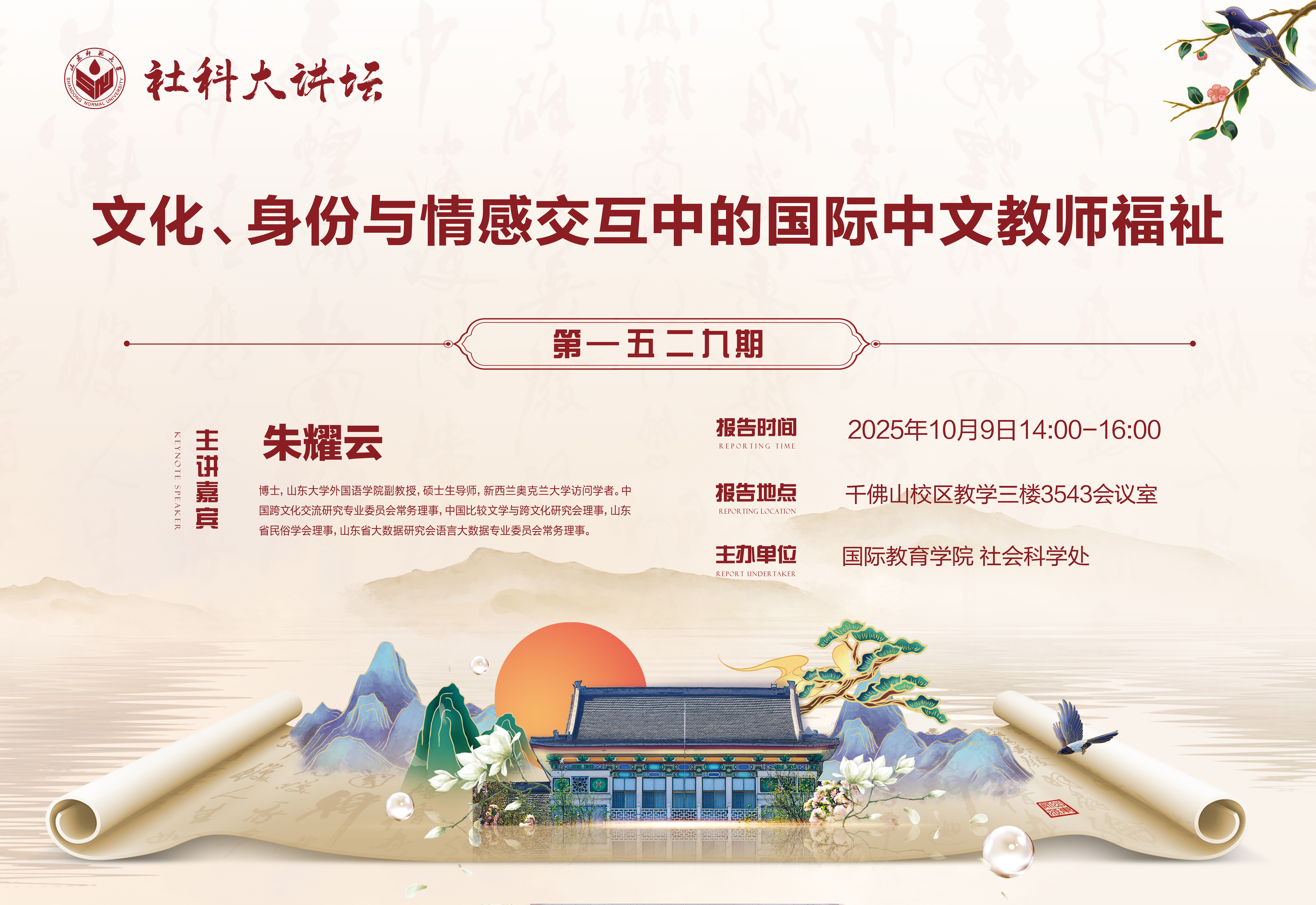 weide1946伟德第1529期预告:朱耀云——文化、身份与情感交互中的国际中文教师福祉