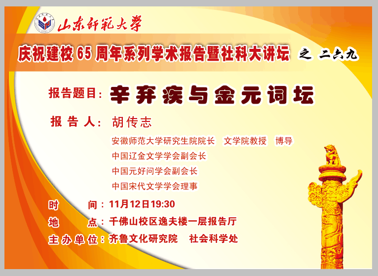 第269期weide1946伟德预告:胡传志——辛弃疾与金元词坛