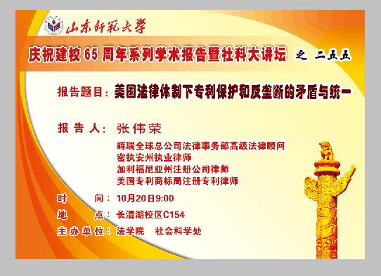 第255期weide1946伟德预告——张伟荣:美国法律体制下专利保护和反垄断的矛盾与统一