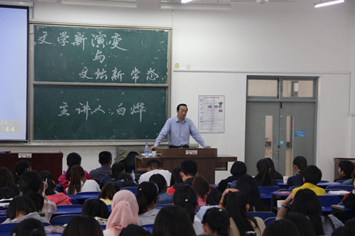10月17日下午,中国社会科学院文学研究所研究员、中国当代文学研究会会长、博士生导师、研究生院教授白烨在我校长清湖校区综合楼B区342教室做了题为“文学新演变与文坛新常态”的报告。文学院吕周聚教授及文学院部分学生参加了本次报告会。