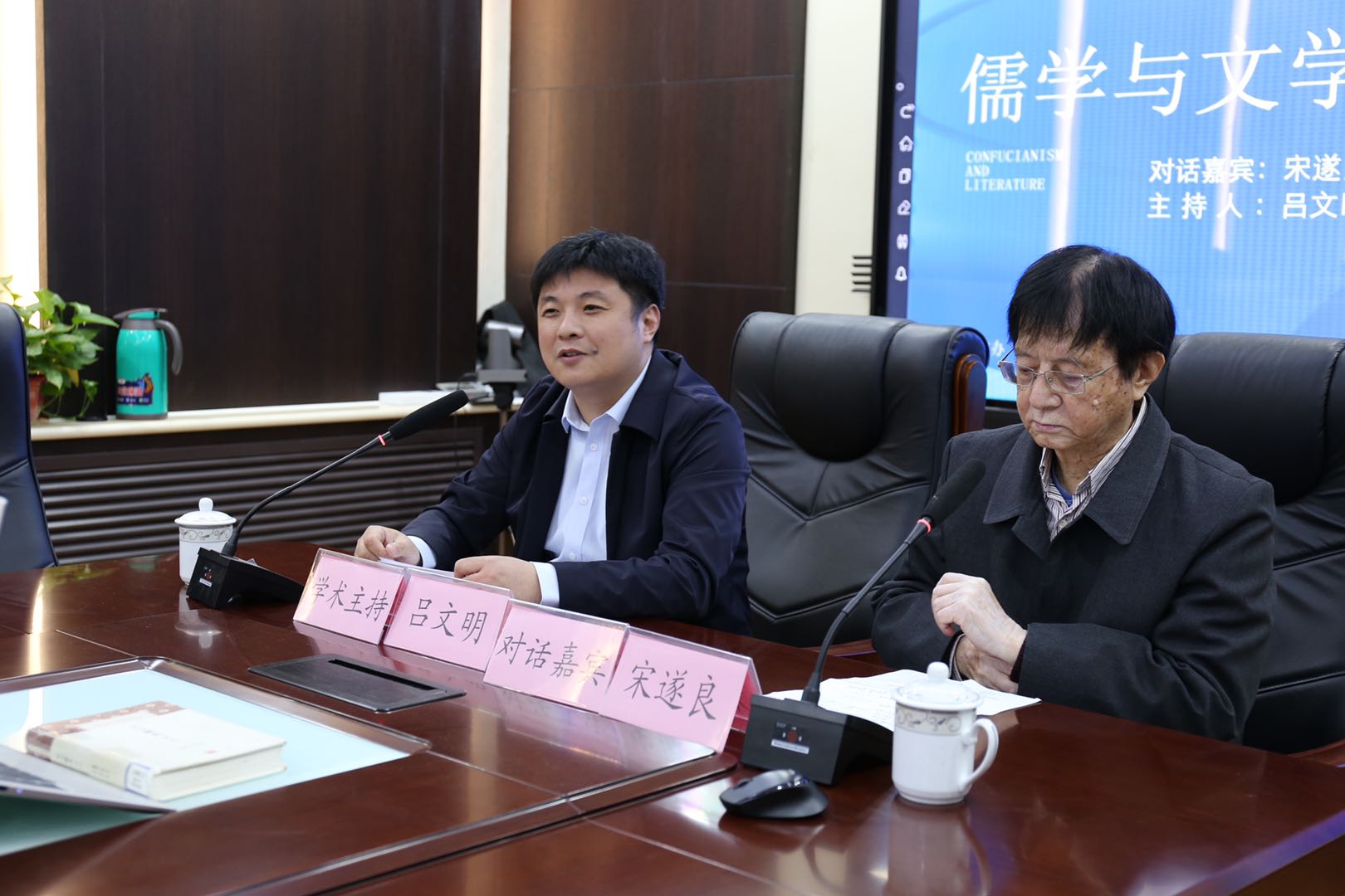 10月16日晚,齐鲁文化研究院“儒学与中国文艺的民族精神研究”创新团队在逸夫楼211会议室举办首场“儒学与文艺”高端学术对话。本次活动由山东师范大学人文社科重点研究平台儒学与文艺发展研究中心主办,团队负责人吕文明教授担任学术主持,著名文学评论家、山东师范大学文学院知名教授宋遂良先生应邀担任对话嘉宾,两位教授进行了一场关于“儒学与文学”关系的精彩学术对话。