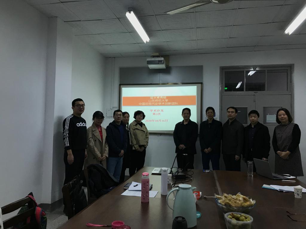 10月16日上午,历史文化学院“中国传统文化近代转型研究”创新团队(A类)、“中国近代慈善组织公信力研究”创新团队(A类培育)、“中国共产党革命精神与文化资源研究” 创新团队(B类)在千佛山校区图书馆教师研修室举办第二次学术沙龙。团队负责人田海林教授、王林教授、刘本森教授,团队成员杜学霞副教授、徐保安副教授、盖志芳副教授、刘志鹏副教授、张少筠副教授以及青年教师万笑男博士、尹承博士、黄润青博士、王雪博士参加活动。